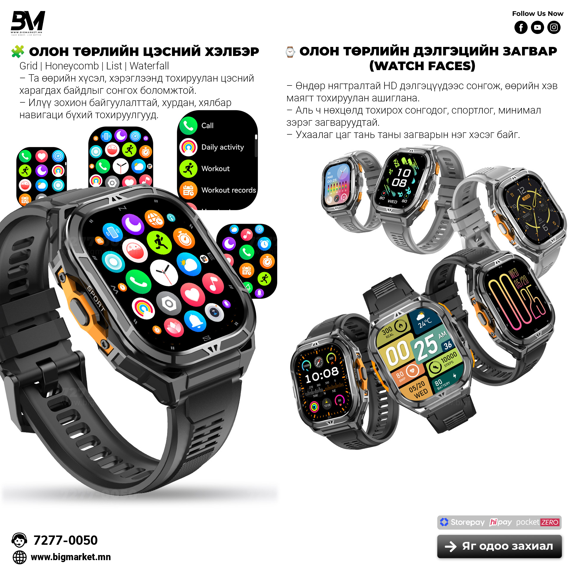 - Цагны нүүр (watch face) солих