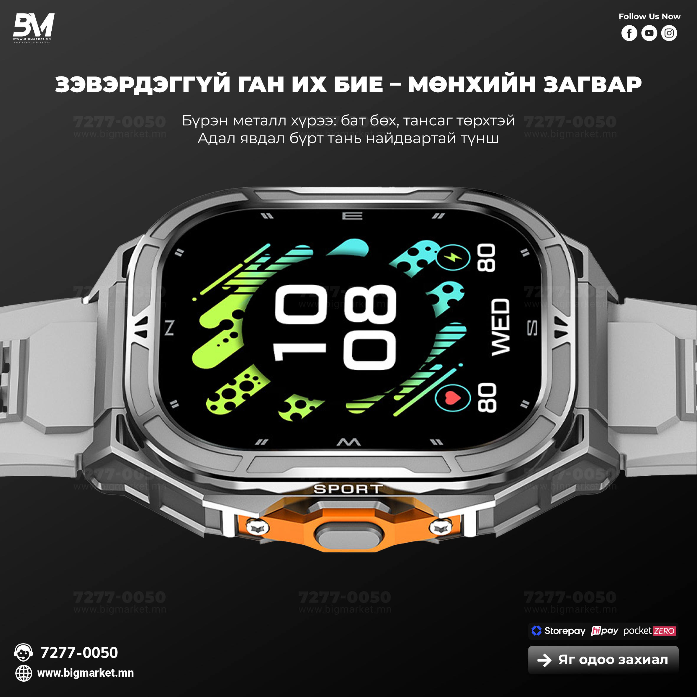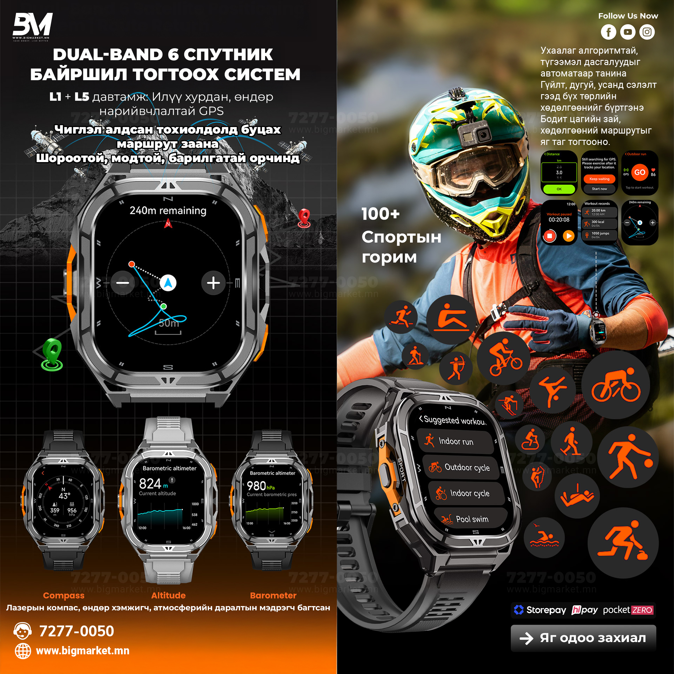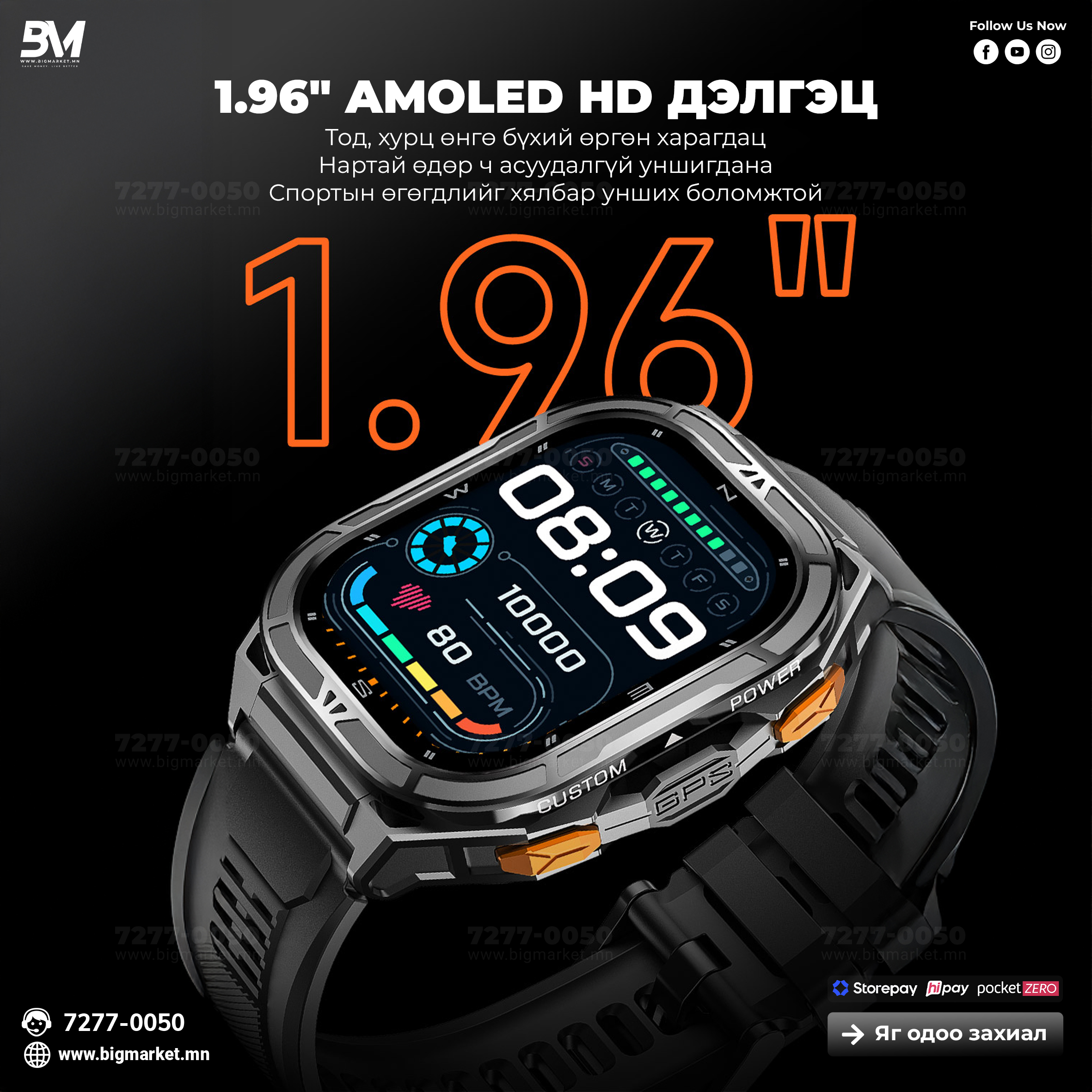 ⌚ 1.96” AMOLED дэлгэцтэй, GPS+Барометр+5ATM хамгаалалттай супер ухаалаг цаг