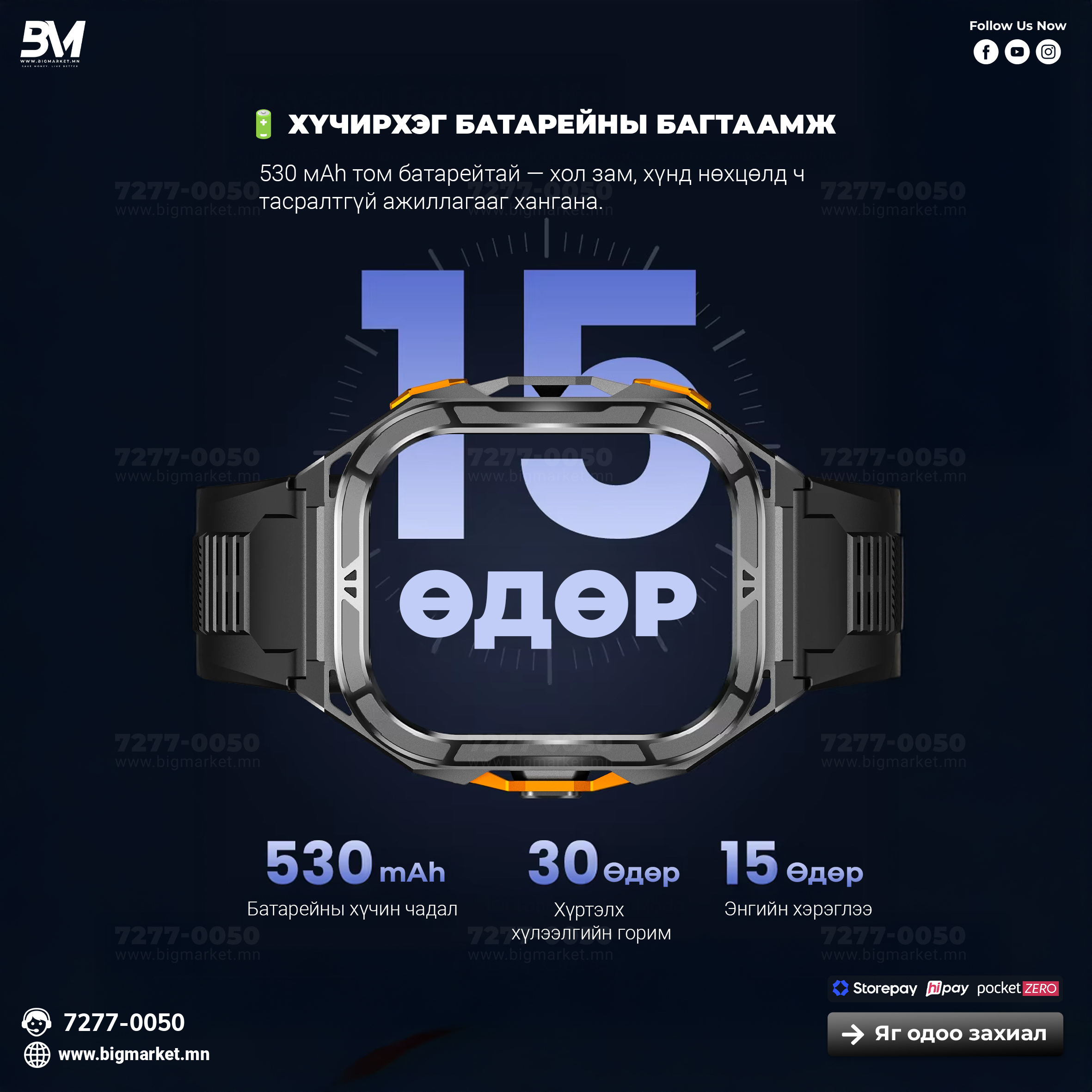 Усны хамгаалалт: 5ATM (50м гүн)
