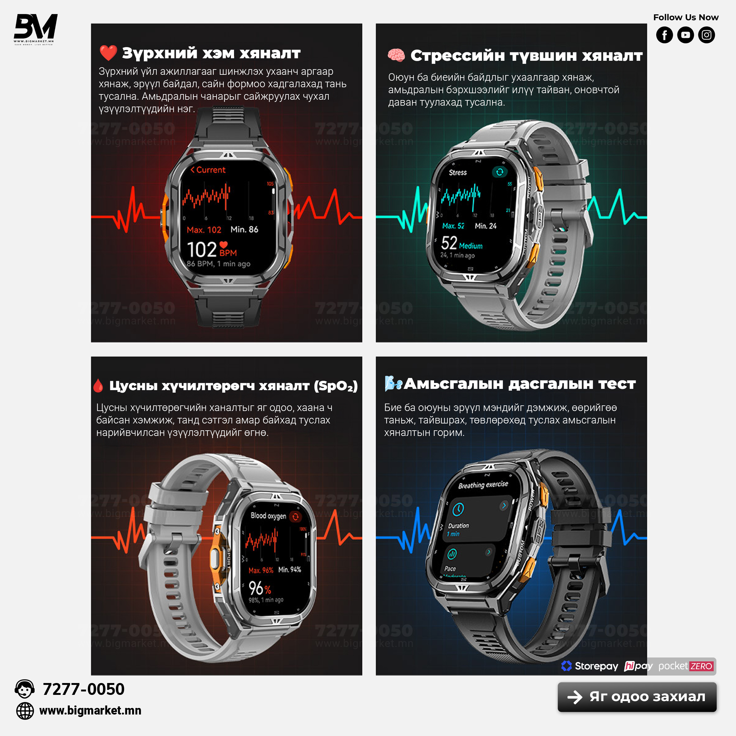 – Цусны хүчилтөрөгч (SpO₂) – улаан/хэт улаан туяаны мэдрэгч
