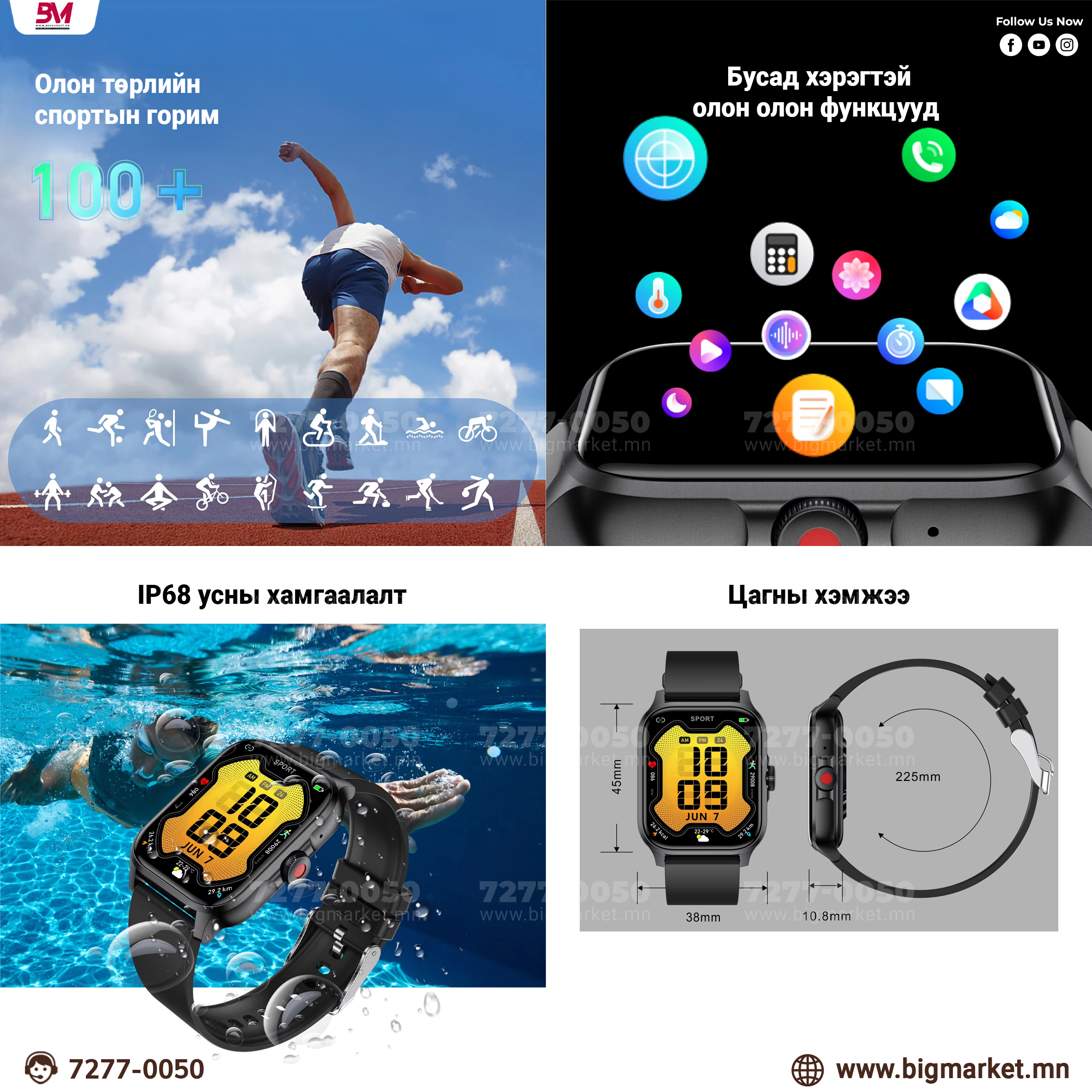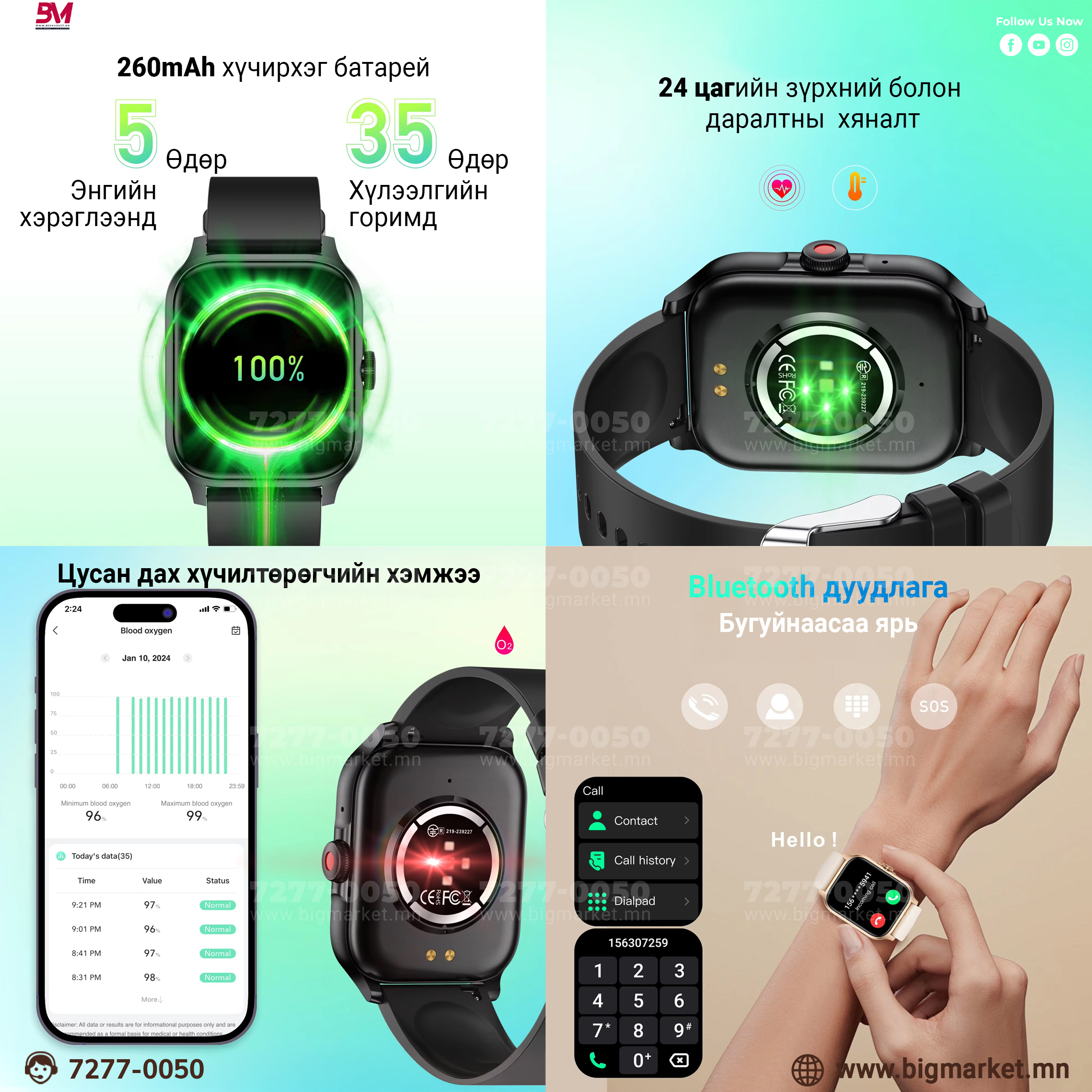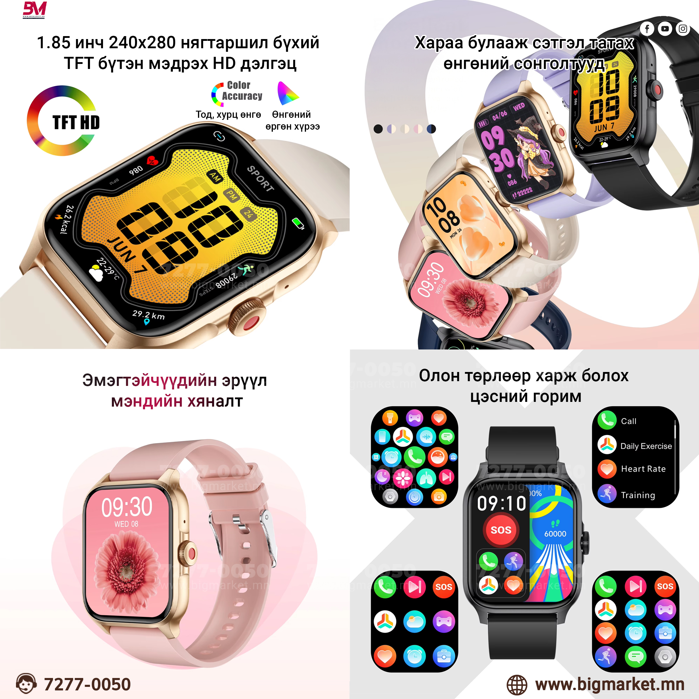 https://youtu.be/X02k6FYl8mUТус цаг нь 1.85 инчийн 240х280 нягтаршил бүхий TFT бүтэн мэдрэх дэлгэц, 5.3 Bluetooth холболт, 260mAh хүчирхэг батарейгаар тоноглогдсон. Үндсэн үзүүлэлт:
