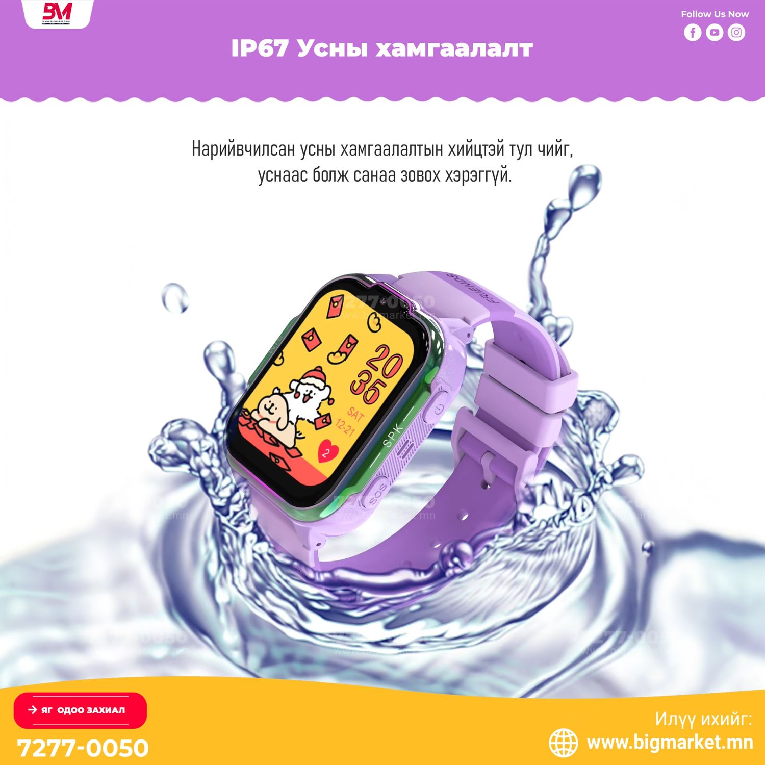 - IP67 усны хамгаалалт (бороо, ус цацагдах, гар угаах үед санаа зовохгүй)